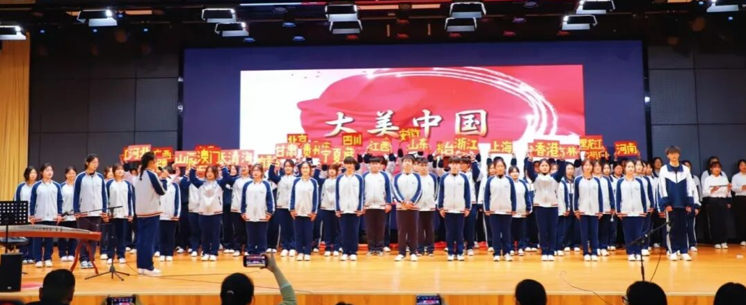 10组涵盖财管、会计、会信等专业的班级队伍依次登台献唱,用歌声诠释青春担当:开场环节,财管241班、会信241班合唱的《有我》迅速点燃全场氛围,歌声中的少年意气直抵人心;会高231班、251班带来的《紫荆花盛开》中,领唱以清亮嗓音开篇,全体成员随旋律舒展“花瓣”手势,将对家国团圆的深切期盼融入每一个细节;会本231班等跨专业组合演绎的《少年中国说》创意编排精巧,领唱与合唱层层呼应,尽显少年锐气与奋进锋芒;会信222班、会高233班的《相亲相爱》以“点到省份”的互动形式串联旋律,传递出民族团结一家亲的深厚情谊;财管251班等班级唱响的《强军战歌》,以铿锵节奏、昂扬气势诠释青年学子的热血担当;会信251班等班级演绎的《歌唱祖国》,队伍前列同学迈着整齐的正步入场,昂扬姿态尽显青春朝气,歌声铿锵有力。