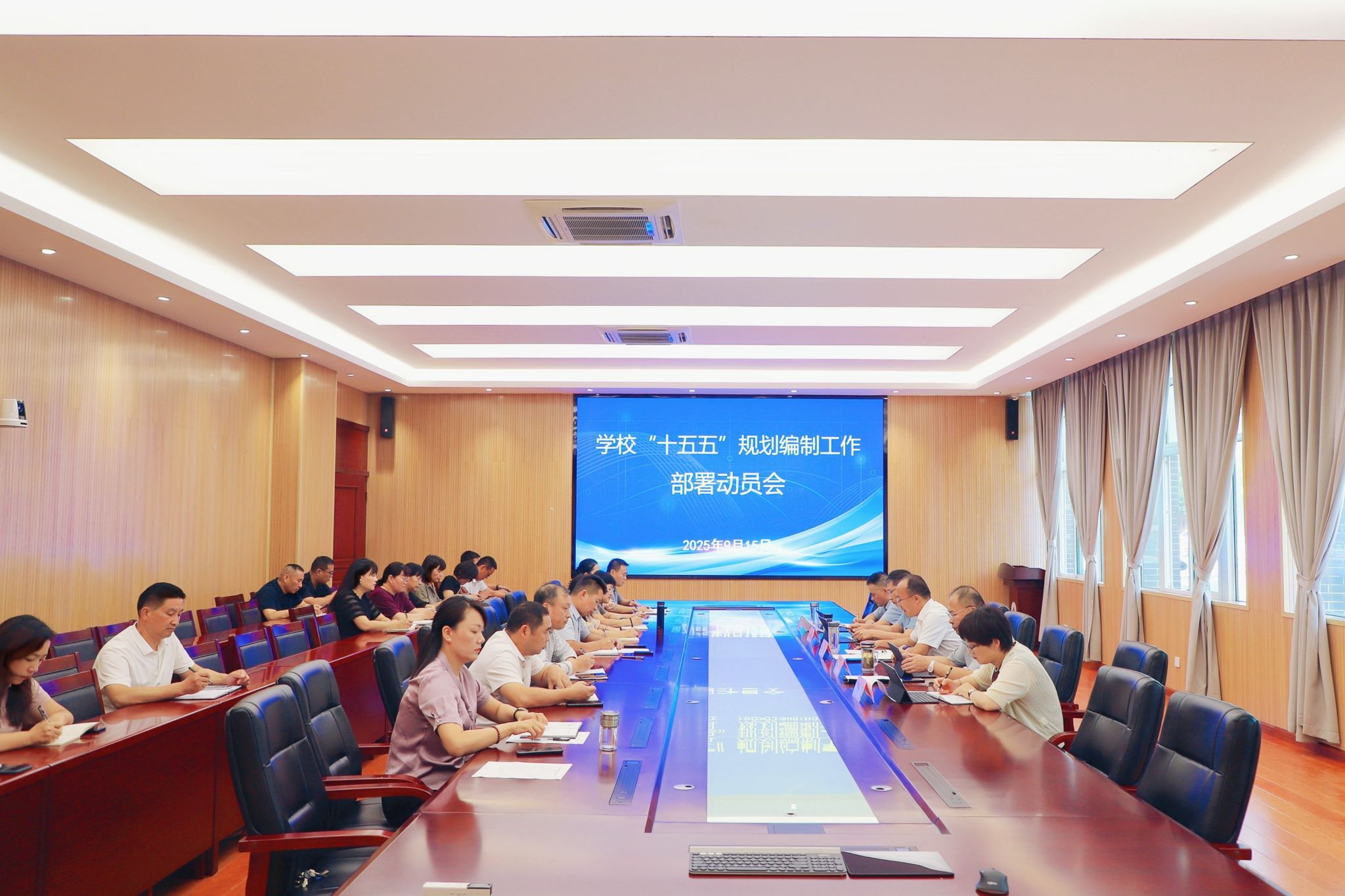 9月15日下午,学校在智能会议室召开“十五五”规划编制工作动员部署会。党委书记、校长刘芳铭主持会议并讲话。学校领导班子成员出席会议,各党支部、二级单位负责人参加会议。