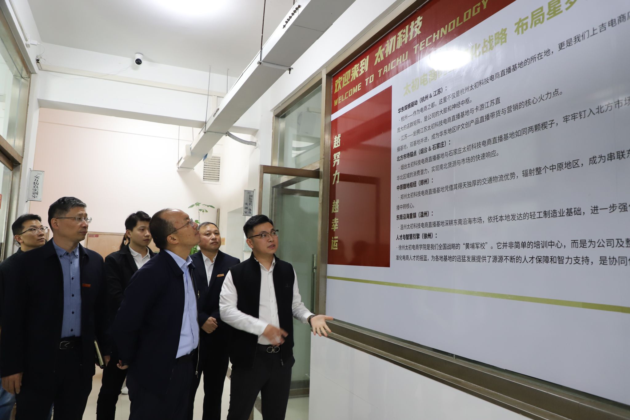 仪式结束后,全体参会人员共同前往实训基地参观。该基地共规划9间专业直播间,目前已完成基础装修、设备调试阶段,已经进行试运行。内部配备了高清摄像设备、专业灯光系统、直播中控台等全套硬件,可满足多平台同步直播、产品展示、主播培训等多元化需求,未来将成为学生开展直播实践、企业进行员工培训的“双功能”平台。