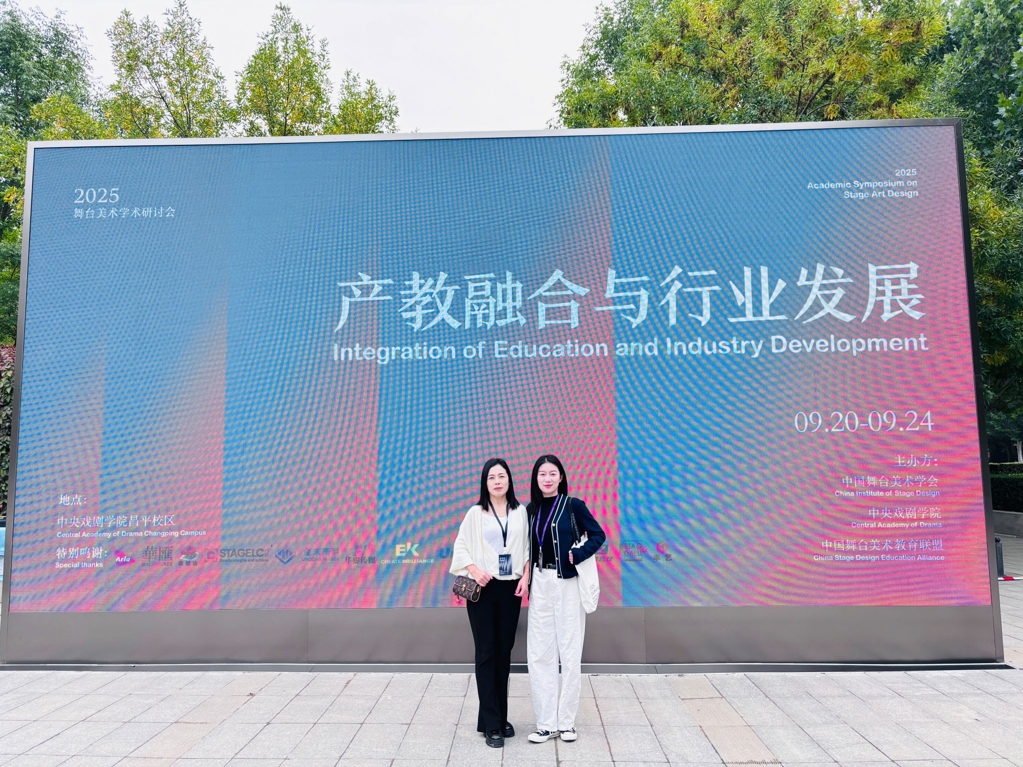 由中国舞台美术学会、中央戏剧学院、中国舞台美术教育联盟联合主办的“产教融合与行业发展——2025首届中国舞美论坛”于9月20-24日在中央戏剧学院举办,学校艺术设计系杨春芳主任和陈丹彤老师应邀参加了会议。我校被授予中国舞台美术教育联盟理事单位,杨春芳被聘任为中国舞台美术教育联盟理事。