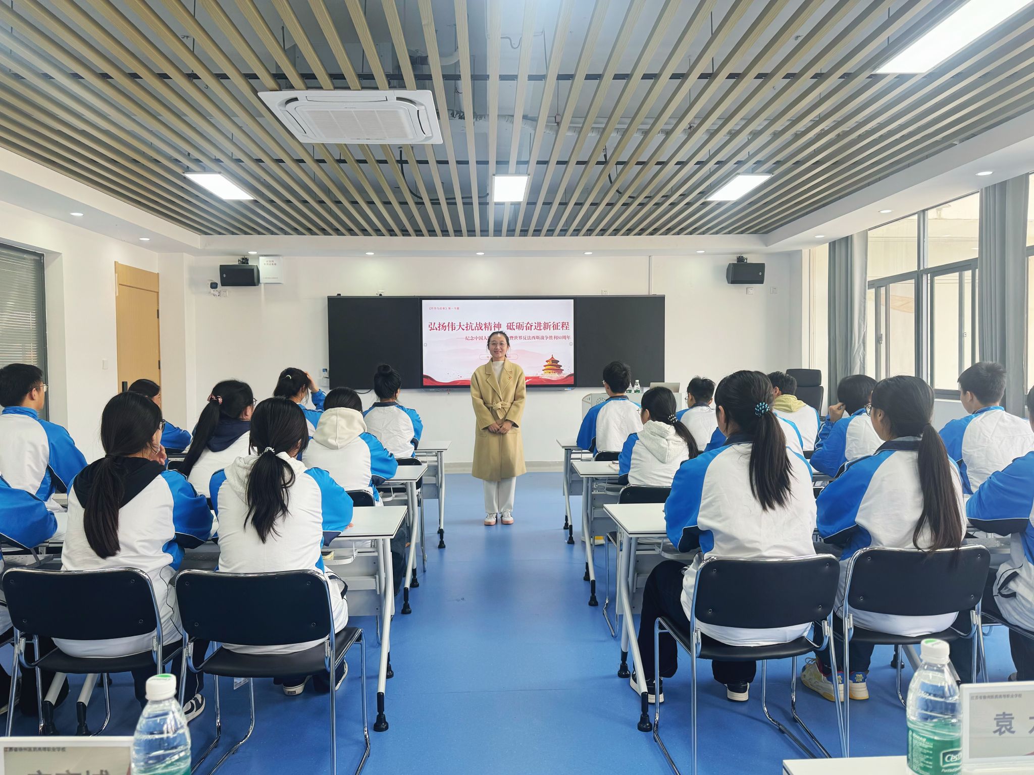 马院青年教师李婧媱代表学校以《弘扬伟大抗战精神砥砺奋进新征程》为题进行公开课展示。她创新采用“镜头致敬”“旋律力量”“家书传承”三大情感模块串联课程,借助AI技术搭建革命先辈与当代青年的“时空对话”场景,让厚重历史变得可感可触。课程尾声,全场师生齐唱国歌,育人氛围推向高潮,充分彰显了我校青年思政教师扎实的教学功底与鲜明的创新意识。