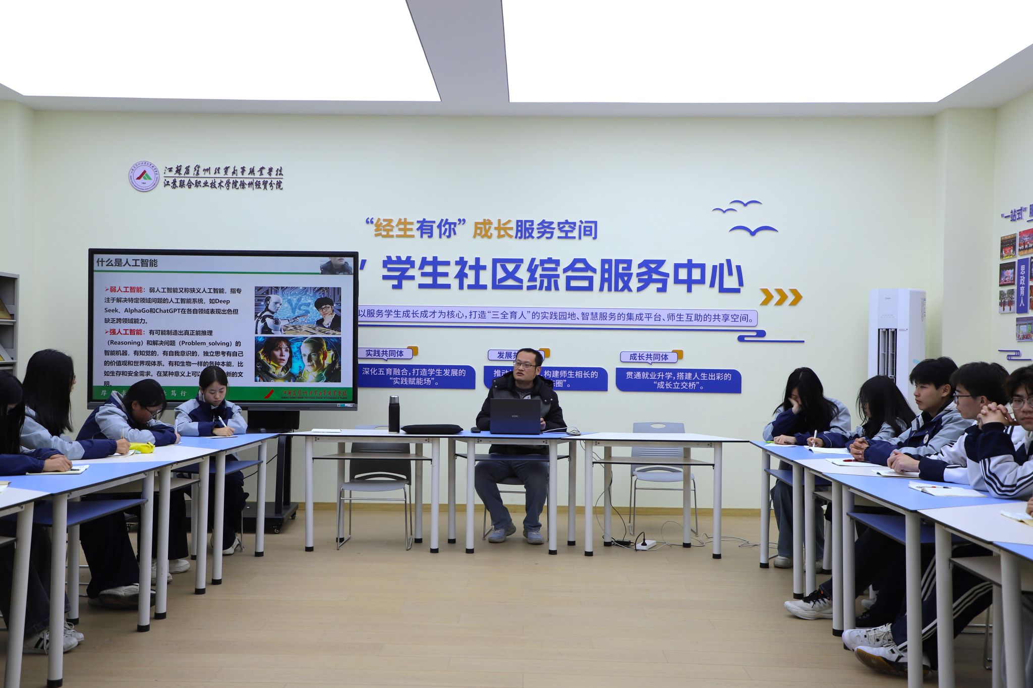 信息技术系骨干教师孙宗毅以“新时代下的人工智能”为题进行分享。他从“图灵测试”“人工智能”术语起源等关键历史节点切入,系统阐释了强弱人工智能的区别,并结合图像识别、智能医疗等实际案例,生动展示了AI技术的广泛应用。孙老师还通过AIGC辅助设计等创新实例,揭示了人工智能的发展潜力,并向同学们推荐了多种实用AI工具与学习路径。互动环节中,他针对AI学习与职业规划等问题逐一解答,现场气氛活跃。