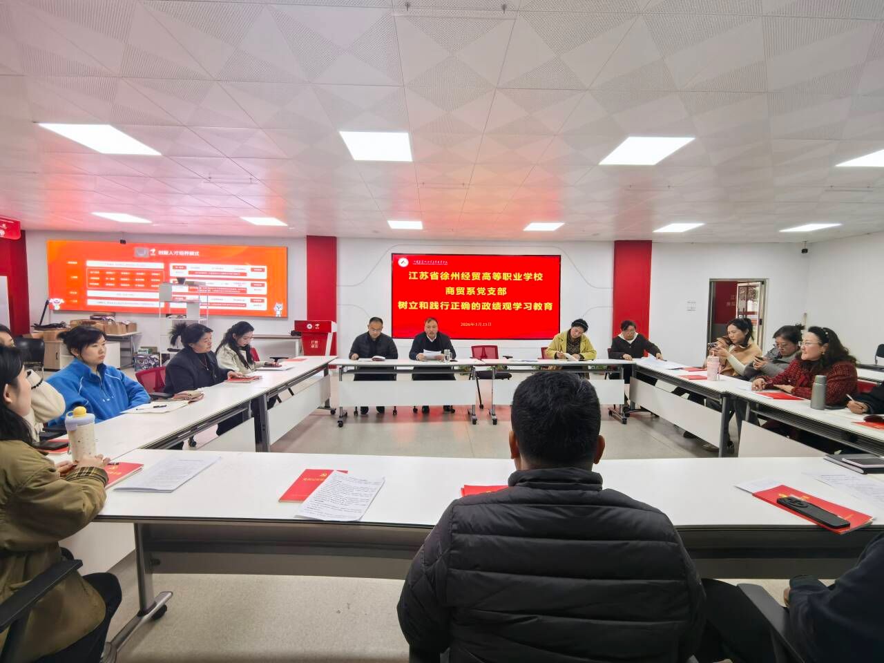 会上,郑海涛传达学校党委关于印发《江苏省徐州经贸高等职业学校党委开展树立和践行正确的政绩观学习教育实施方案》的通知,深入解读正确政绩观的核心要义、实践要求与现实意义。他紧密结合商贸系教学科研、学生管理、产教融合等重点工作,明确本次学习教育的目标任务,要求全体党员提高政治站位,自觉履职尽责,深化思想认识,切实把思想和行动统一到上级工作部署上来。