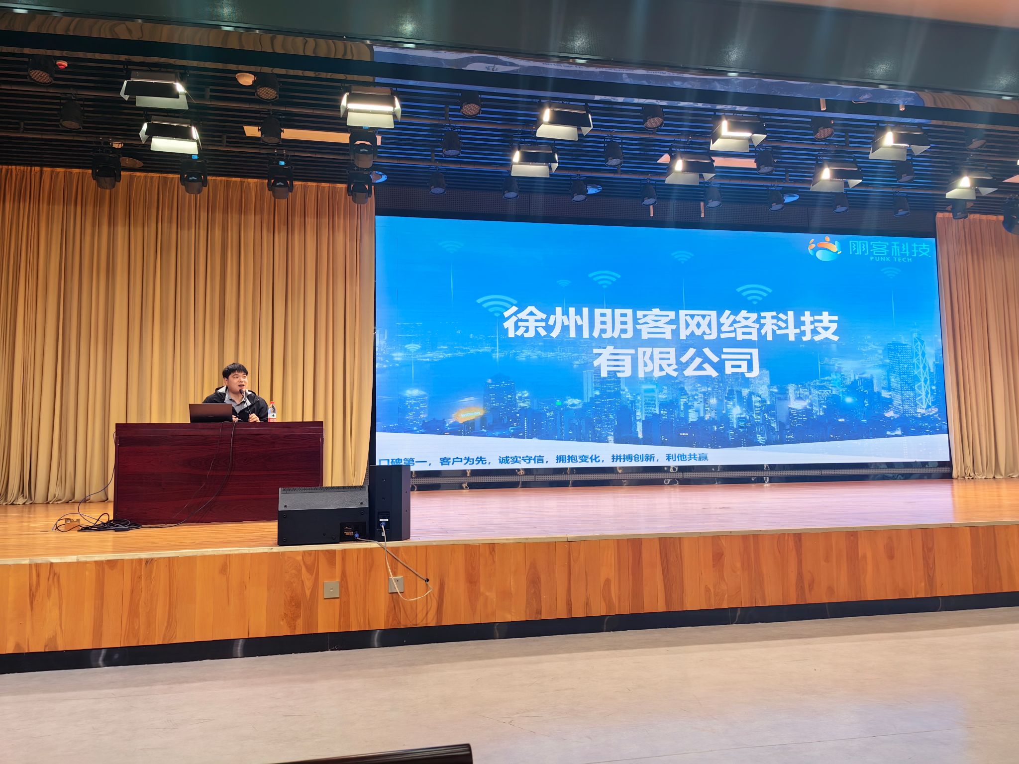 3月30日中午,徐州朋客网络科技有限公司校园宣讲会在我校报告厅成功举办。本次宣讲会由商贸系郑海涛主任主持,公司沈经理担任主讲人,全校各专业22级300余名学生到场参与,现场氛围热烈有序。