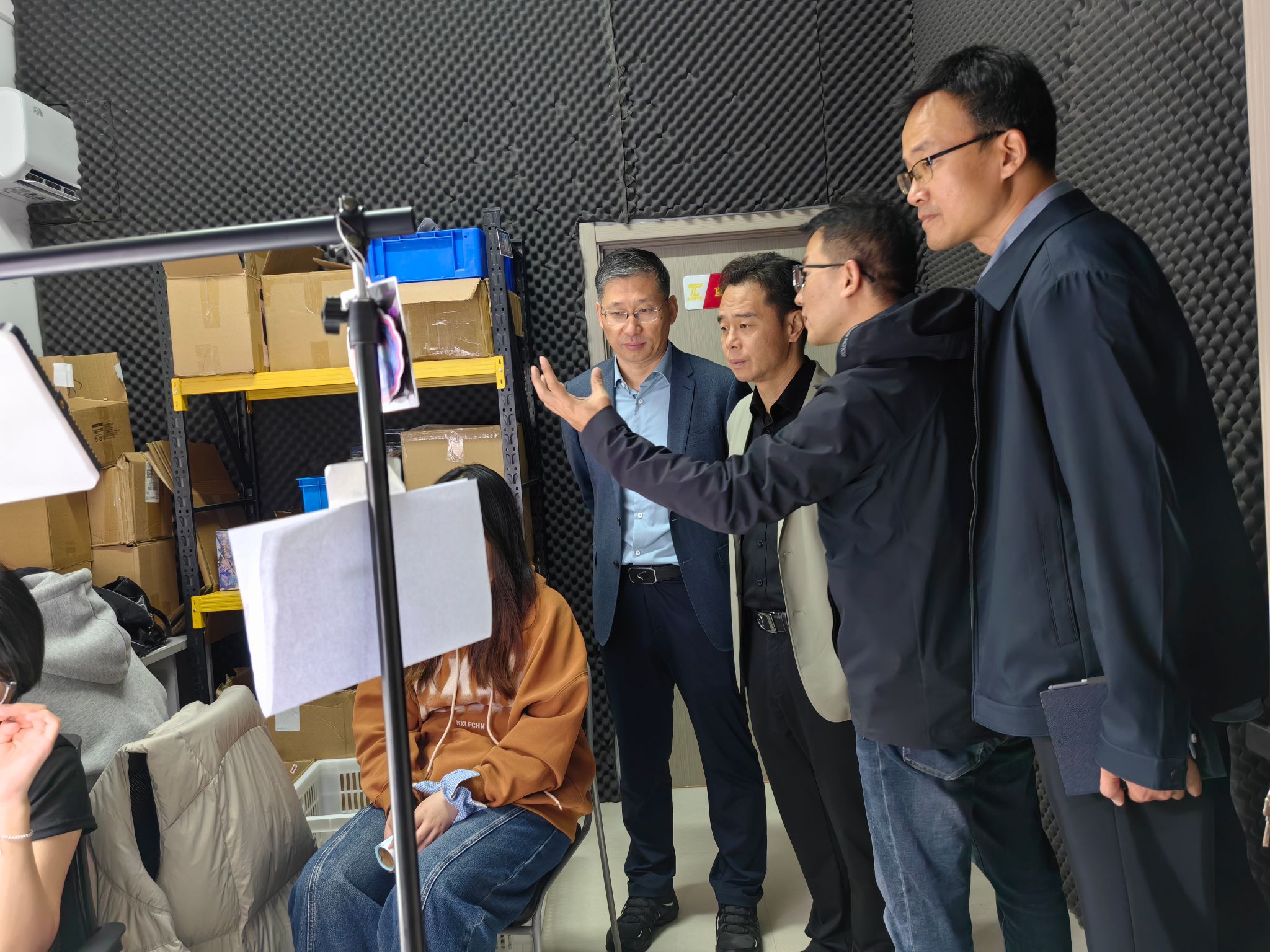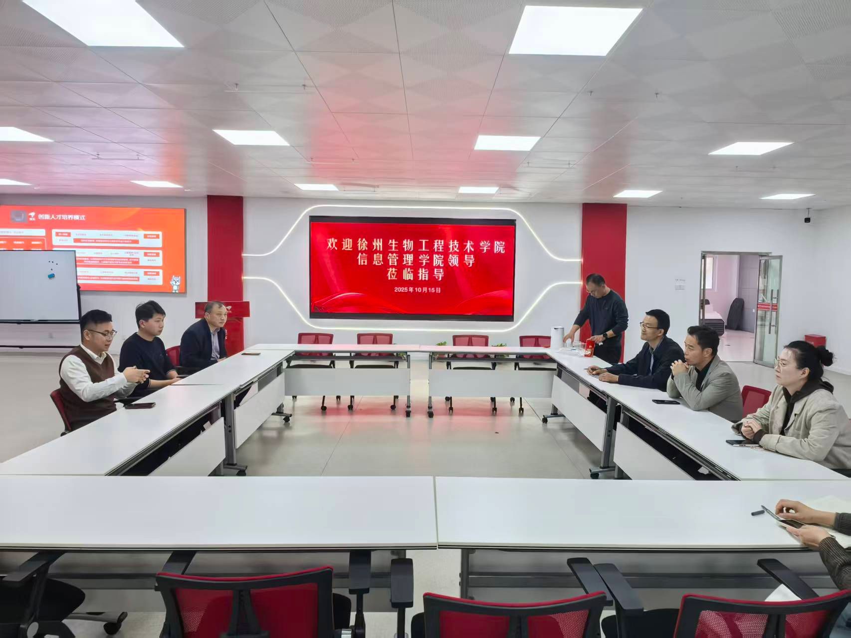 10月15日上午,徐州生物工程职业技术学院信息管理学院黄院长带队一行5人到学校商贸系参观交流产教融合直播实训基地建设与运营情况,学校袁剑锋副校长、商贸系郑海涛主任等热情接待。