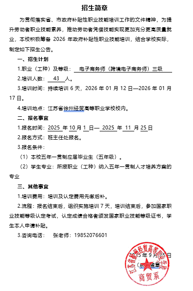 江苏省徐州经贸高等职业学校技能等级认定公告