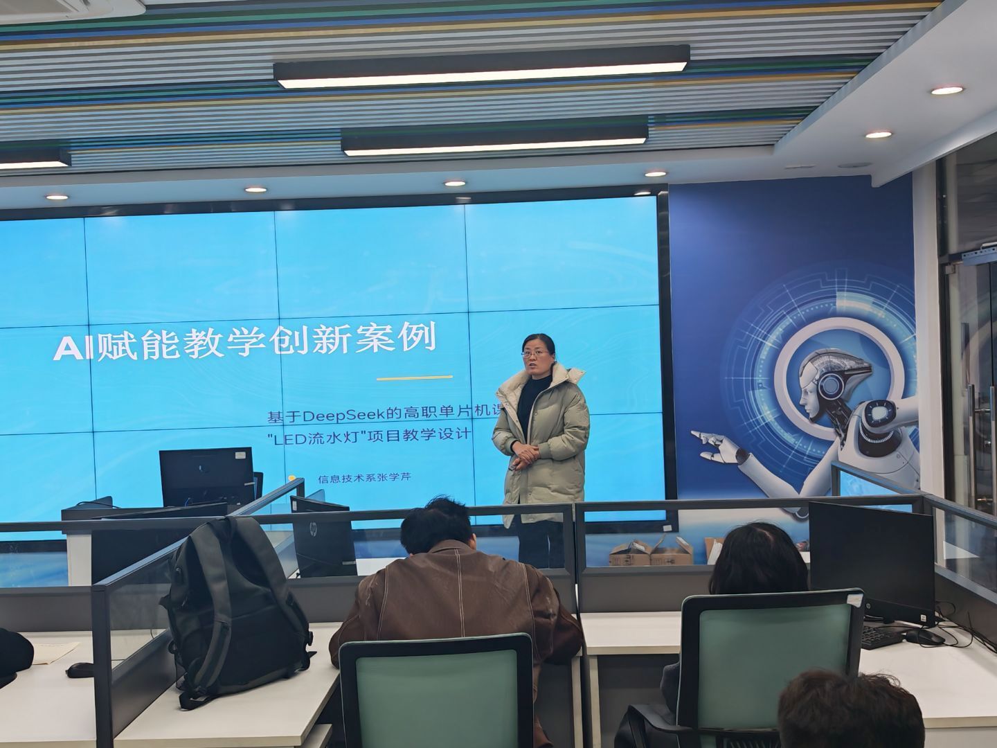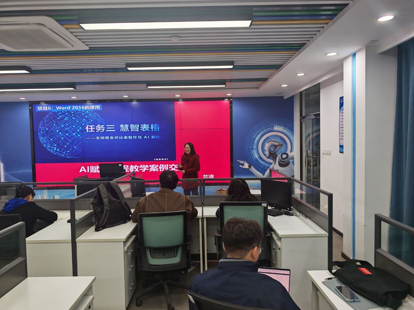 为深化人工智能技术与教育教学深度融合,提升教师数字化教学能力,3 月 20 日下午,信息技术系在信息大楼 602 室顺利开展AI 赋能课程教学案例交流教研活动。全系教师及部分行管兼职教师齐聚一堂,共话 AI 教学创新实践,共享优质教学经验。