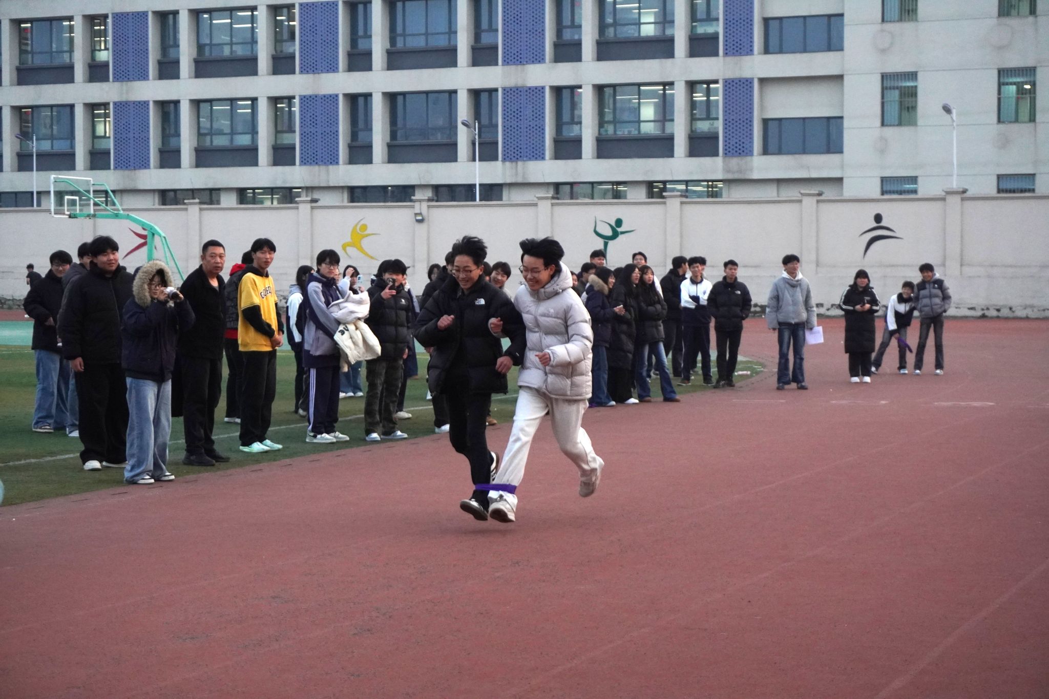 比赛过程中,五系一部的参赛同学们,两人一组,用系带将相邻的两条腿绑在一起,形成“三足”状态。同学们在一次次尝试中不断调整步伐、统一节奏,从最初的配合生疏到逐渐形成默契,充分体现了团队合作的重要性。赛场上既有紧张激烈的比拼,也不乏欢声笑语,加油声、喝彩声此起彼伏,现场气氛十分热烈。各班参赛选手精神饱满、斗志昂扬,充分展现了我系学生积极进取、团结协作的良好精神风貌。