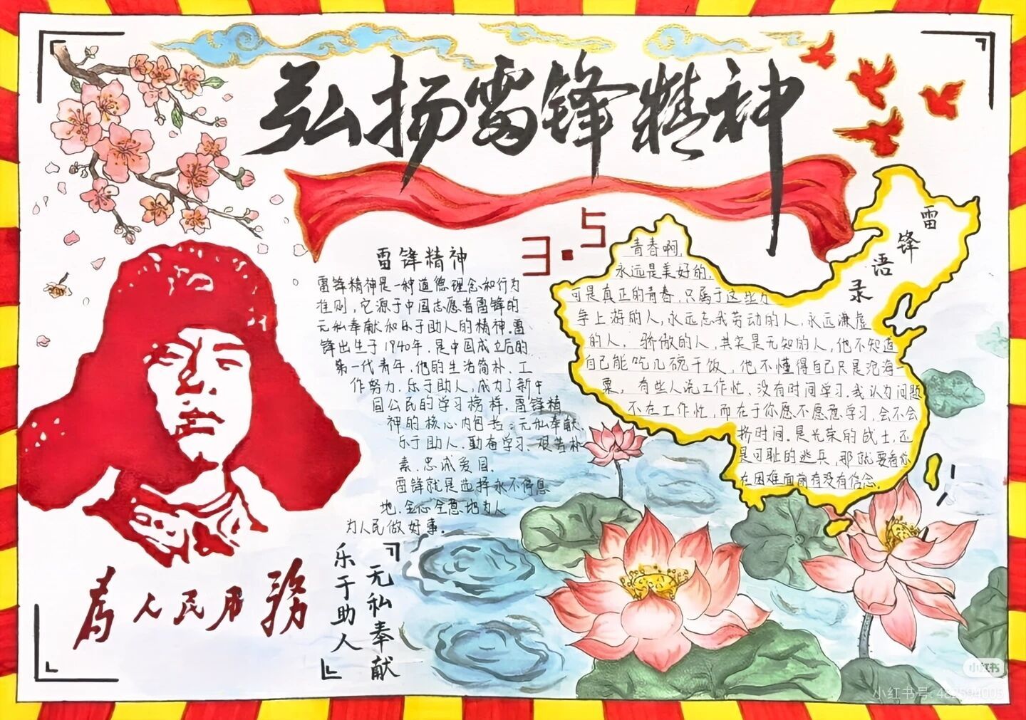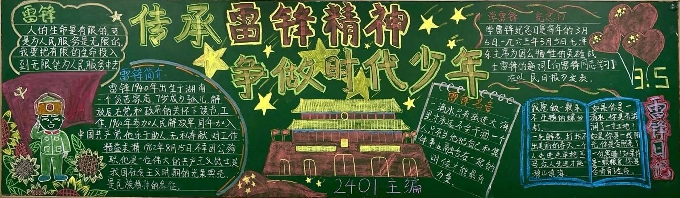 为深入传承雷锋精神,弘扬新时代文明新风,引导学生践行“奉献、友爱、互助、进步”的志愿精神,厚植青少年的责任与担当,我们艺术设计系在学雷锋活动月期间,精心组织开展“传承雷锋精神·争做时代新人”主题黑板报及手抄报评比等系列活动。活动以黑板报、手抄报为载体,鼓励学生诠释雷锋精神的时代内涵,展现新时代青少年向善向美的精神风貌。